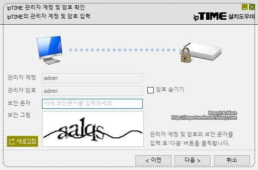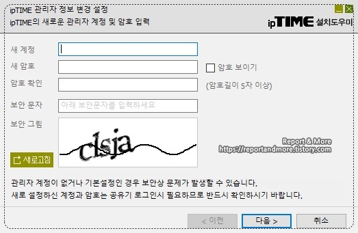그러면, [새 계정(새로운 관리자 이름)]과 [새 암호]를 넣으실 수 있습니다.