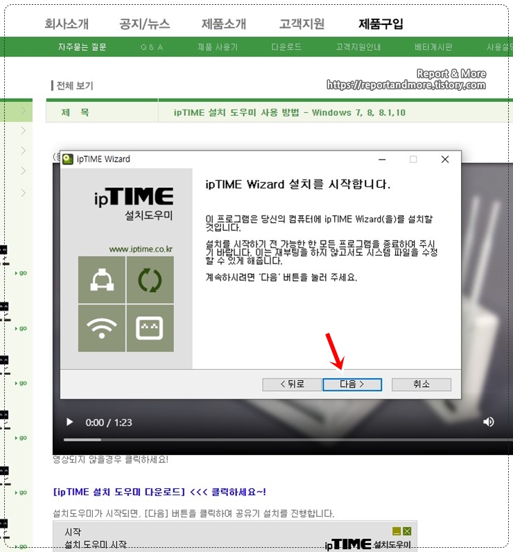 [ipTIME 설치 도우미 다운로드]를 클릭해 주세요.