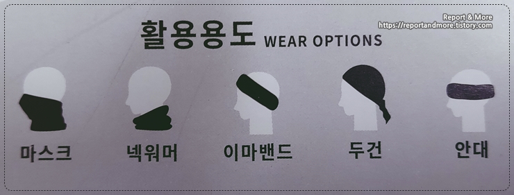 마스크, 넥워머(쿨 제품인데?), 이마밴드(굳이?), 두건, 안대(운동 중에 졸릴 때?)
