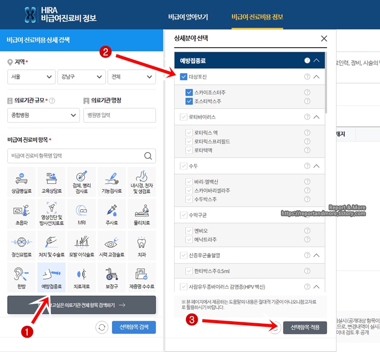 그리고, (3)이 중요한데요, 진료 항목을 직접 입력해서 찾으실 수도 있고요,