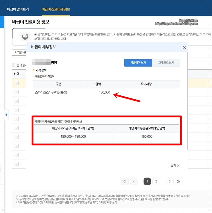 예를 들어서, 이 병원의 경우 '18만원'을 받고 있는데,