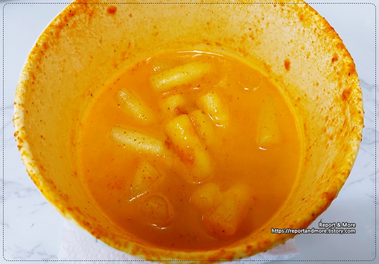 이 제품은 크리미한 맛이 부족한, 일반 매운 떡볶이에 '크림맛이 조금 있는 맛'이었습니다.