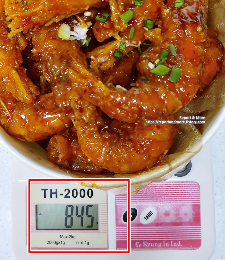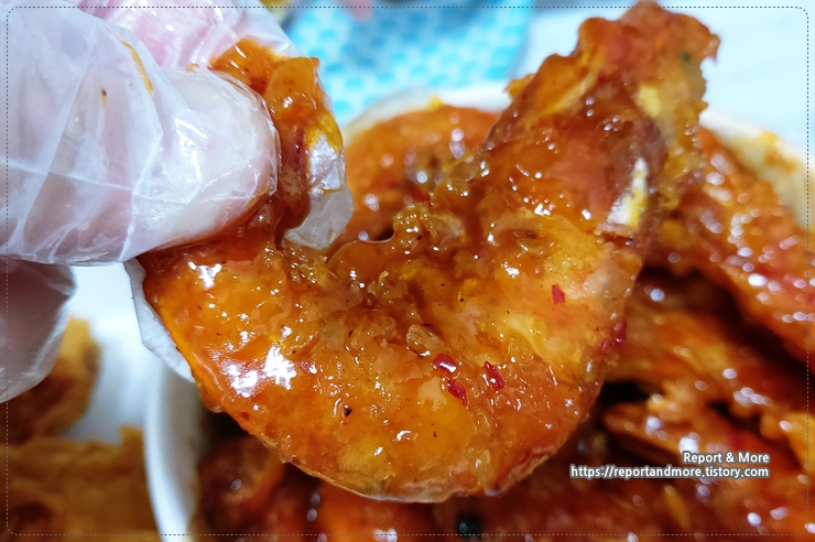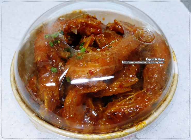 맛은... 홈플러스에서 팔고 있는 양념치킨과 완전히 똑같은, 새우버전이네요.