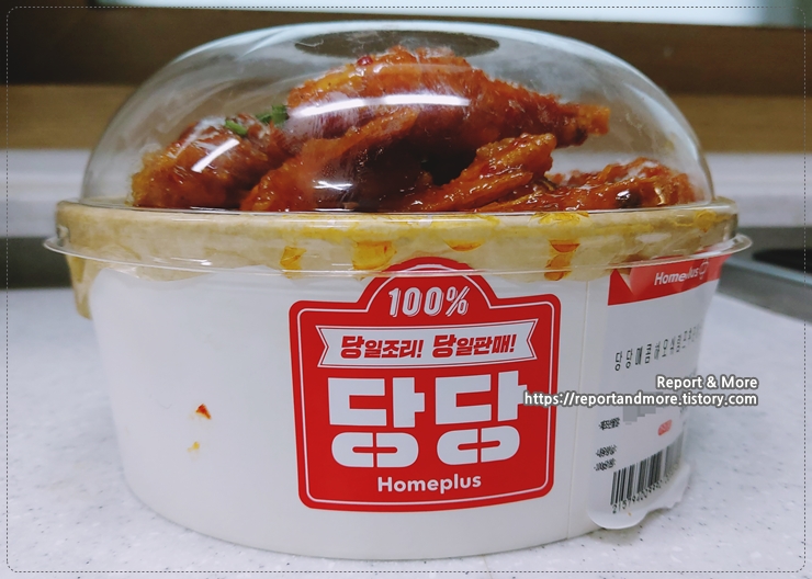 홈플러스 당당치킨과 같은 통에 담겨서 판매됩니다.