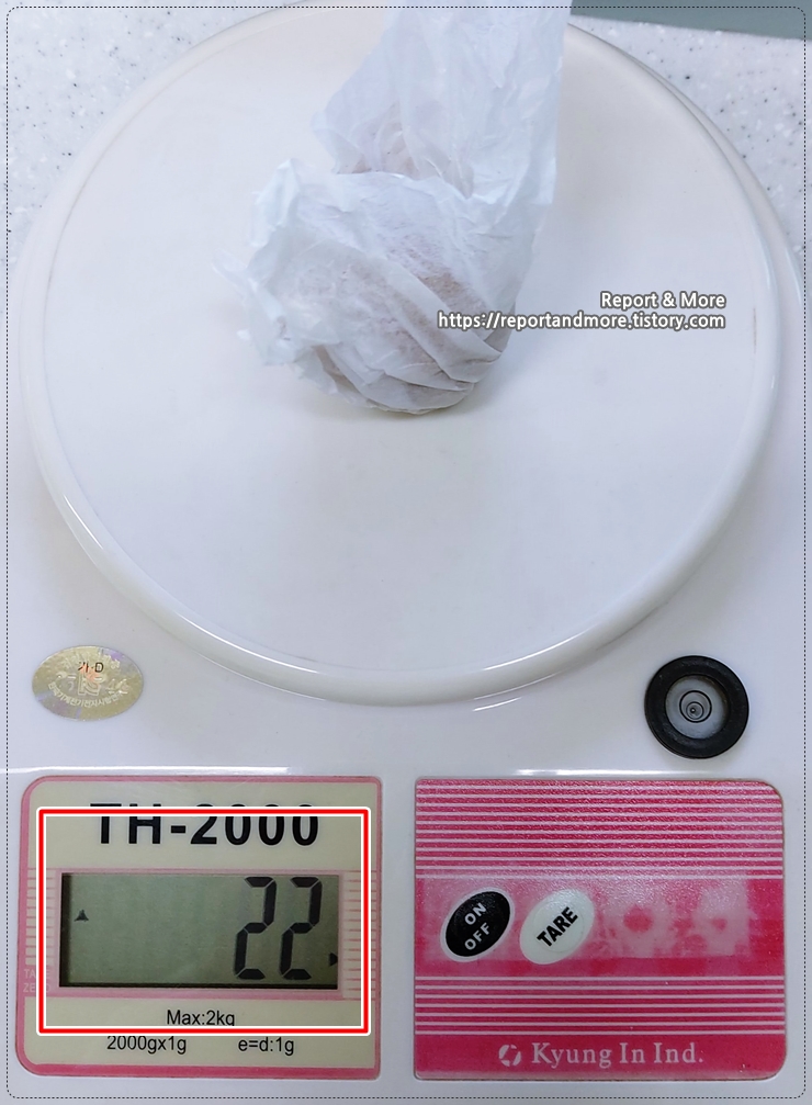 무게를 재 보았습니다. 22g이 나오는군요.