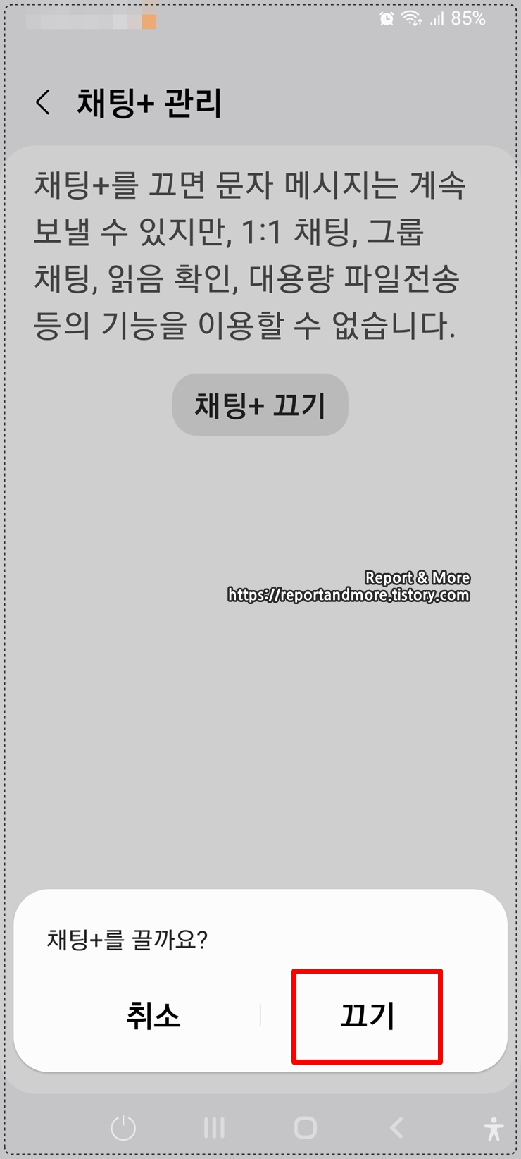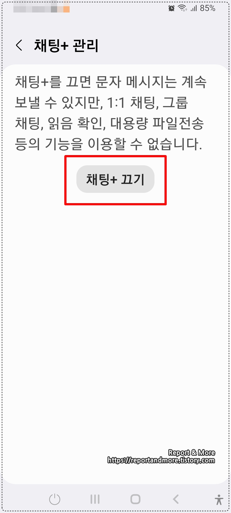 그래서, '채팅+' 기능을 해제(끄기)하고, 그냥 일반적인 문자 메신저로 돌아가려 합니다.