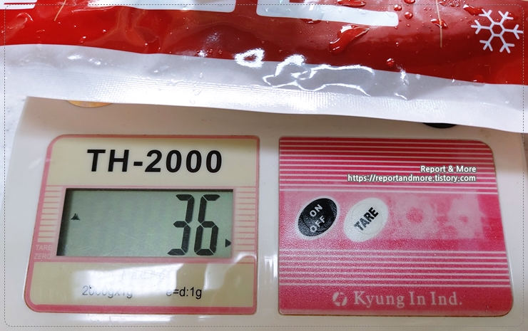 고기를 뺀 후, 무게를 재 보았더니 36g이 나왔습니다.