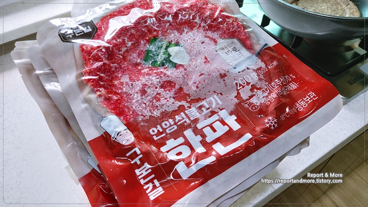 이 제품의 특징은 해동하지 않고, 냉동실에서 꺼내 바로 조리해서 먹으면 되고요,