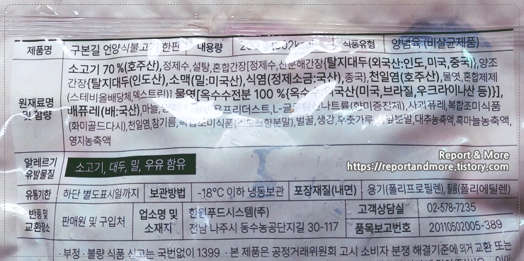 호주산 소고기를 사용, 제품의 70%를 소고기로 채웠습니다.