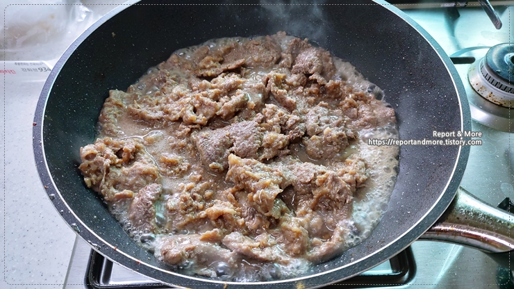 뒤집으면서 구우시면, 부침개처럼, 동그랗고 예쁜 불고기 한판을 그대로 만드실 수 있을 듯하네요.