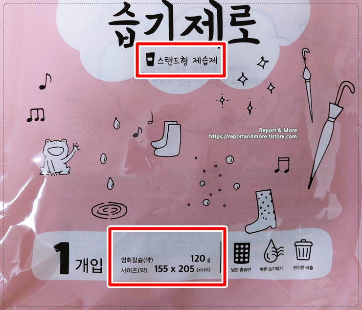 스탠드형 제습제 보다 좀 더 중량이 많습니다. 150g이고요,