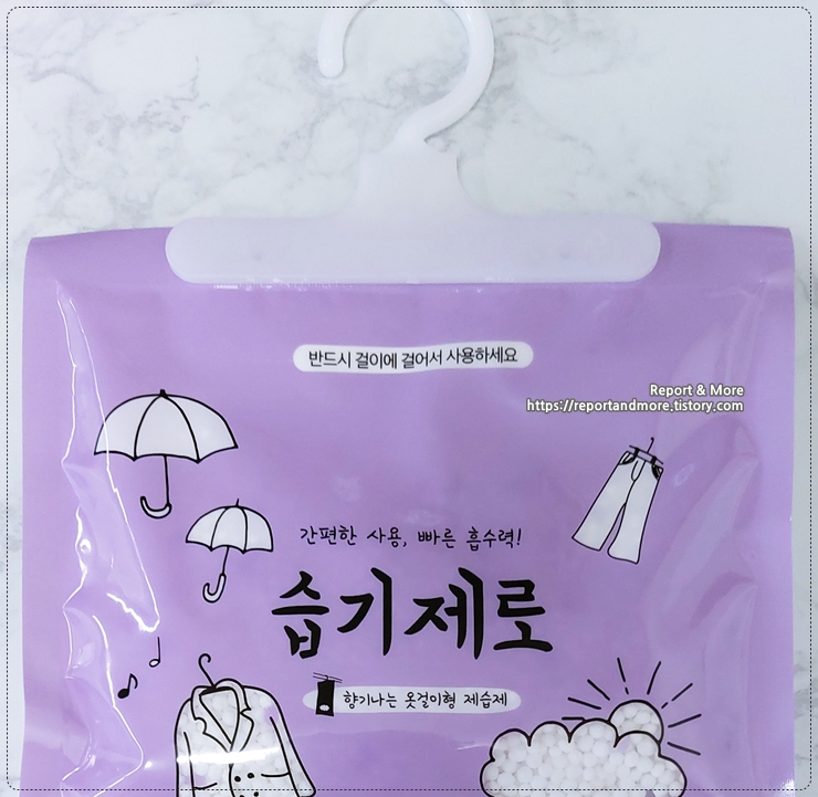 이 제품은 옷걸이에 걸어 둘 수 있는 옷걸이형 제습제입니다.