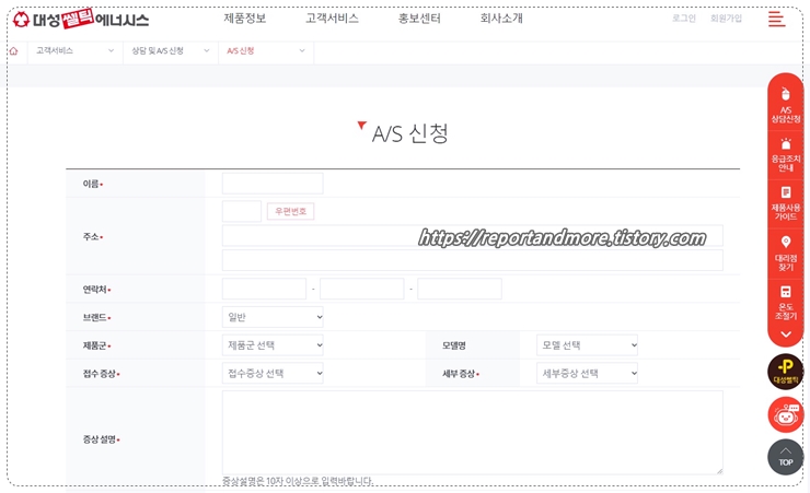 저는 상담시간이 지났기 때문에, 홈페이지를 통해 AS신청을 했습니다.