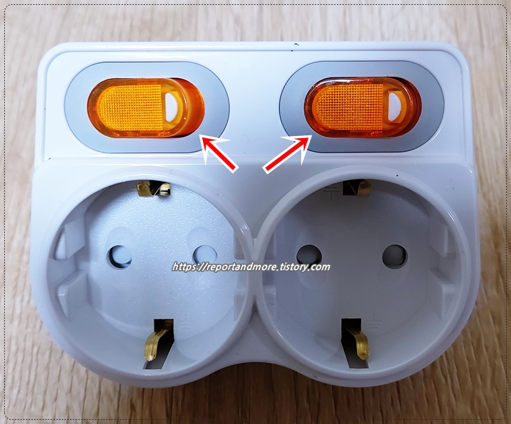 오호~ 저렴하게, 가격은 3,000원이었고요, 2구에, 각각 개별 스위치가 있습니다.