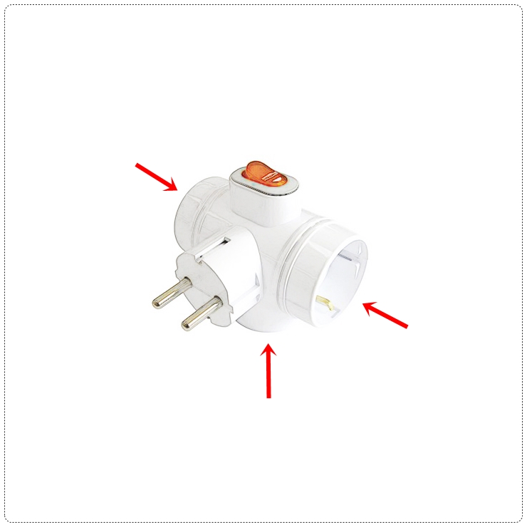 그런데, 일반적으로 벽에 꽂아 사용하는 멀티 콘센트는 3구의 이런 모양이 많더군요.