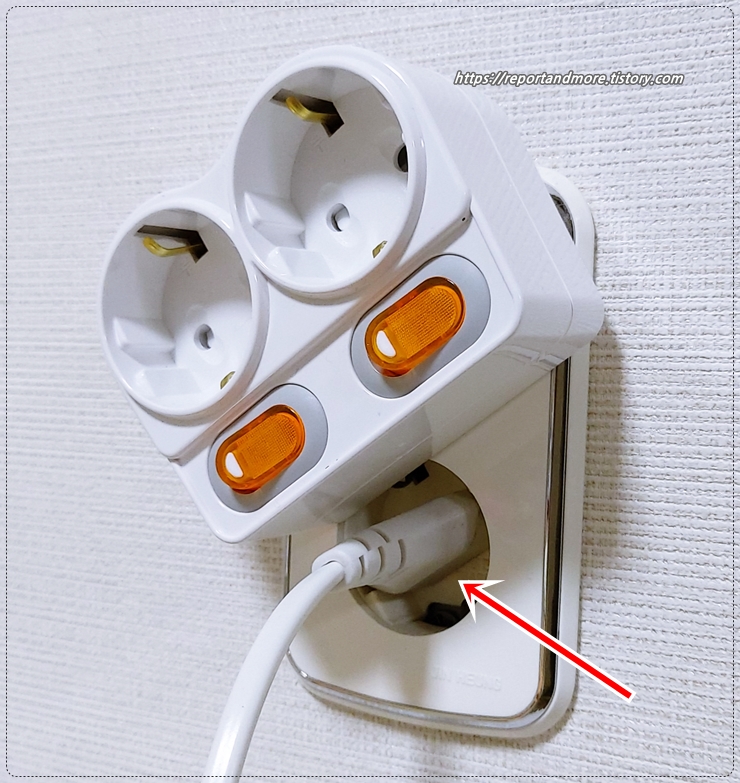 위에는 꺼 두었다가, 사용할 때만 잠시 켜는 제품의 플러그만 꽂아 둡니다.