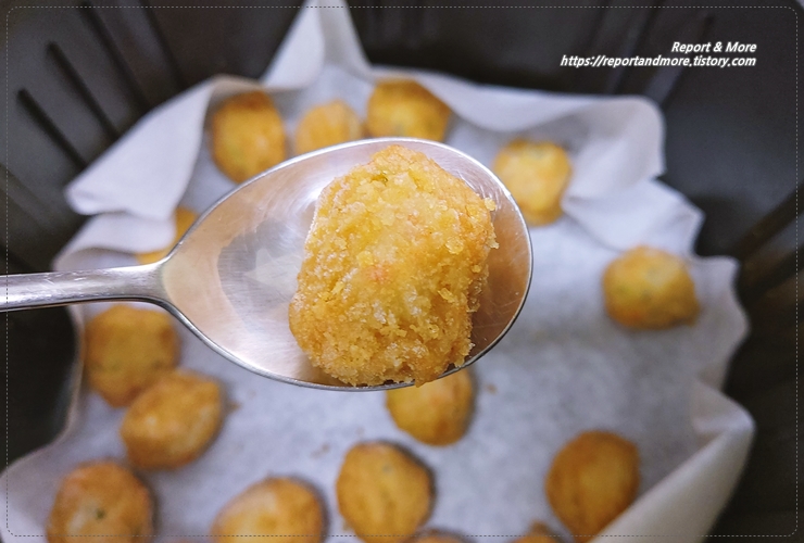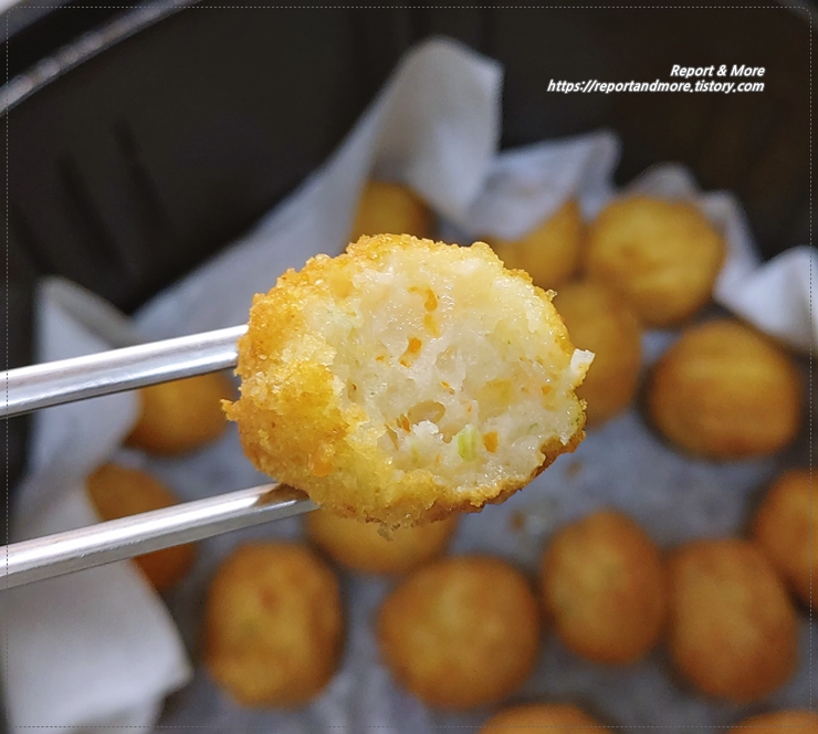 에어 프라이어로 조리 시, 170도로 5분간 예열된 상태에서, 170도로 10분 조리하면 끝!