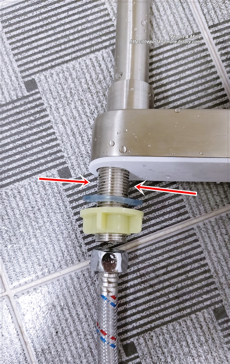그러면, 수도꼭지에 연결된 부분만 풀어낸 후, 새 수도꼭지만 연결하면 되니까, 일이 엄청 쉽습니다.
