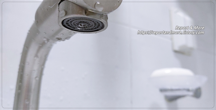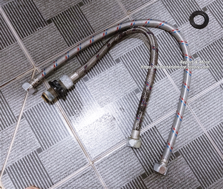 세면대 위에 수전(수도꼭지)이 있고, 중간에 호스를 연결해서(여기서는 중간 호스라고 부르겠습니다),