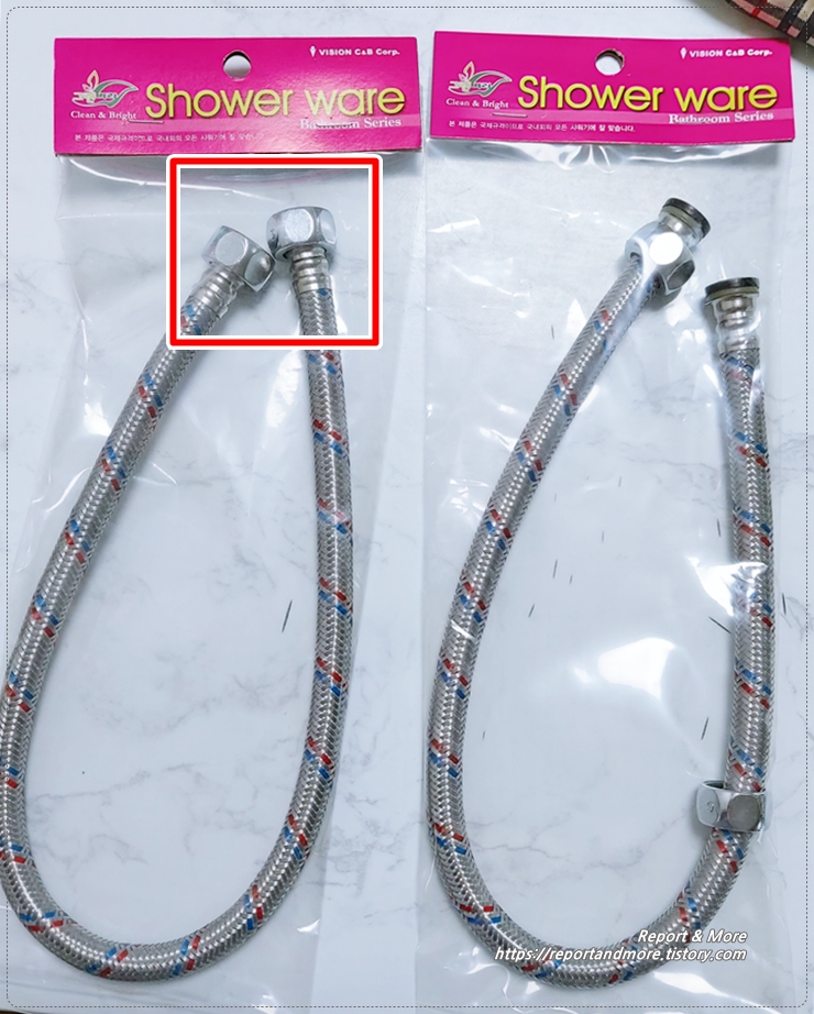동네 철물점에서 구매한 제품인데, 이 제품 밖에 없어서, 기존 것 보다 약간 긴 것을 사 왔습니다.