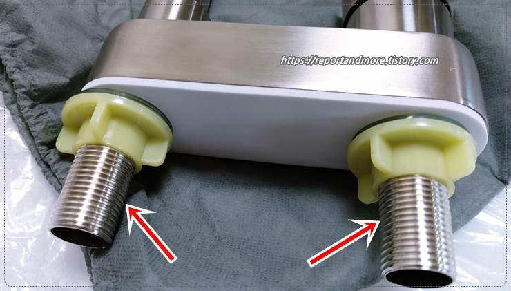 이 부분이 뜨거운 물과 찬 물을 공급받는 호스를 연결하는 부분입니다.