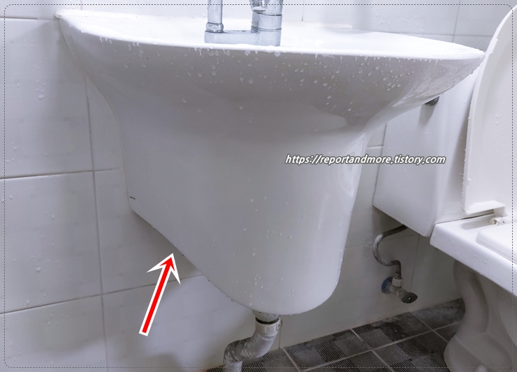 위에 수전이 있고요, 화살표가 있는 그 부분에 세면대가 위치하는 부분입니다.