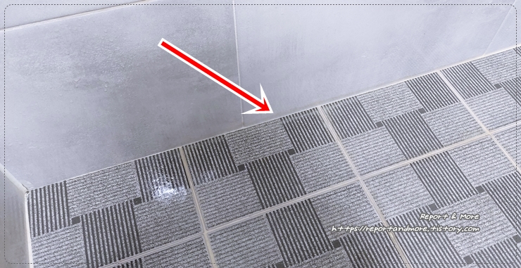 바닥 타일과 벽타일 사이도 마찬가지로, 넉넉히 뿌려 주었습니다.