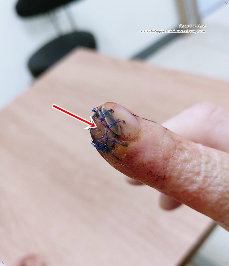 그런데, 그냥 피부가 아닌, 손톱에 꿰맨 부분은 너무 아파서, 울뻔했습니다.