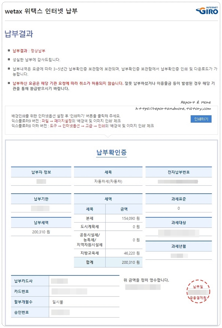 이제 1년 동안은 세금 걱정 없이 (?) 편하게 안전 운전하시면 됩니다.
