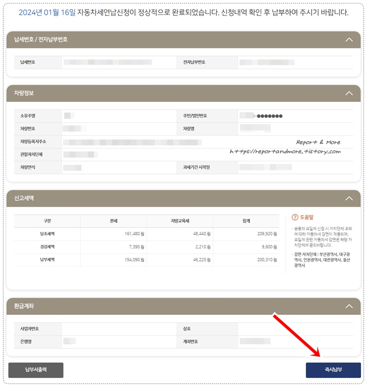 저는 [즉시납부]를 클릭해서, 바로 세금을 냈는데요,