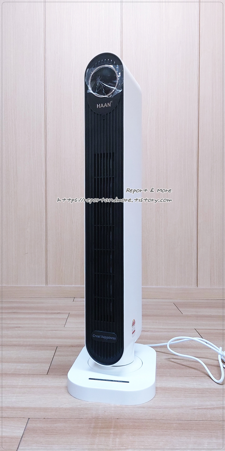 타워형으로 되어 있고, 받침대, 설명서, 리모컨이 포함되어 있습니다.