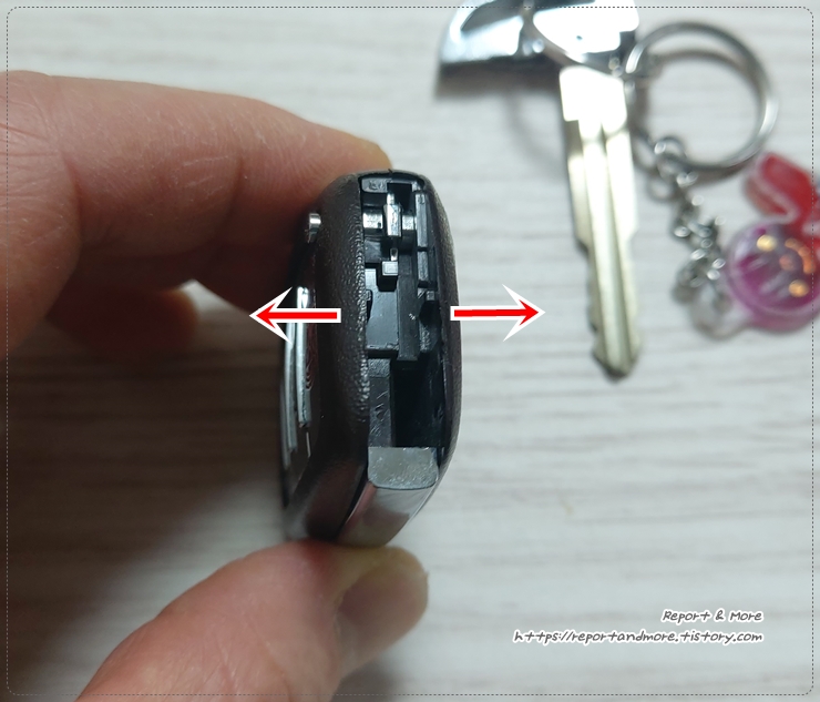 그러면, 이제 마지막으로 '화살표 표시'되어 있는 부분에 자동차키를 꽂아 넣습니다.