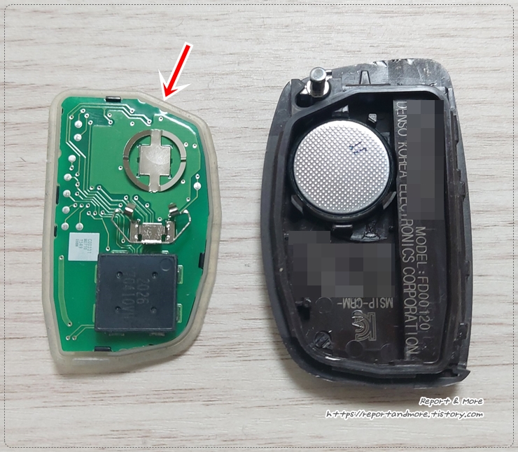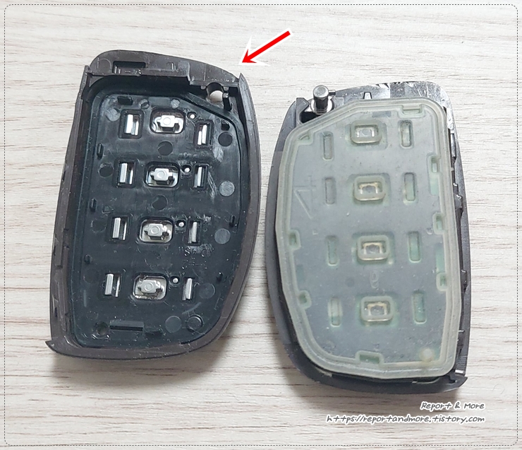 일단 자동차키는 한쪽에 두시고, 우리가 오늘 작업해야 하는 자동차키 본체를 위에서 보시면,