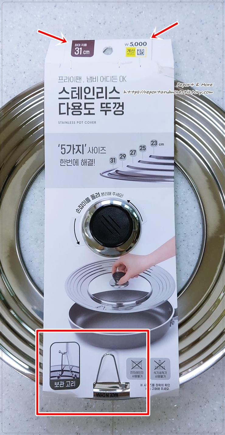 이 스테인리스 다용도 뚜껑은 최대 지금 31cm 크기의 냄비 혹은, 프라이팬(궁중팬)에 사용할 수 있고요,
