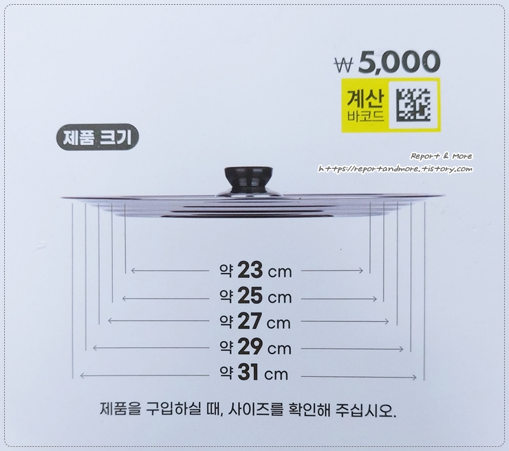 최소 지름 23cm에서, 최대 31cm 냄비나 궁중팬에 사용할 수 있다고 되어 있네요.
