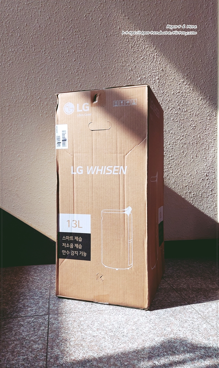 이렇게 현관 앞에 똬악~ 놓여 있는 새 친구, LG 휘센 제습기!