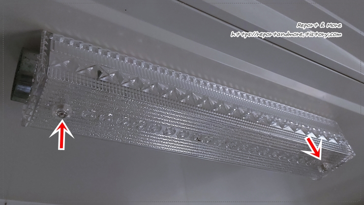 그리고, 화살표시되어 있는 부분에 있는, 나사를 풀어서, 형광등 커버를 분리해 줍니다.