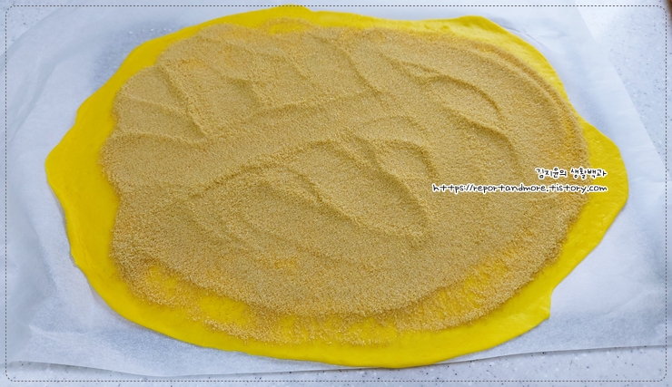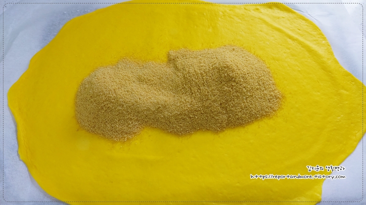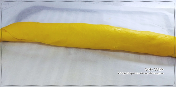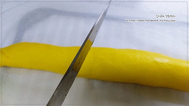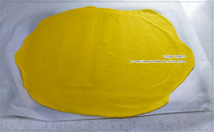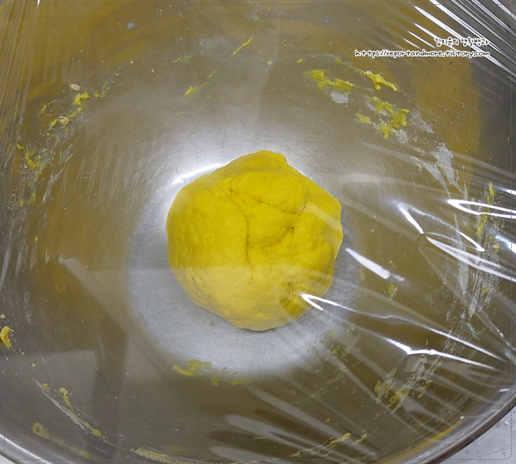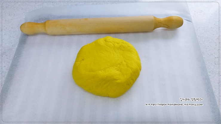 아무 생각 없이 초당옥수수 호떡믹스를 꺼냈더니, 노란색이 되었군요.