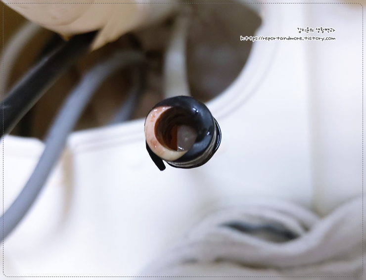 그 안을 보았더니, 이상한 이물질이 있네요.