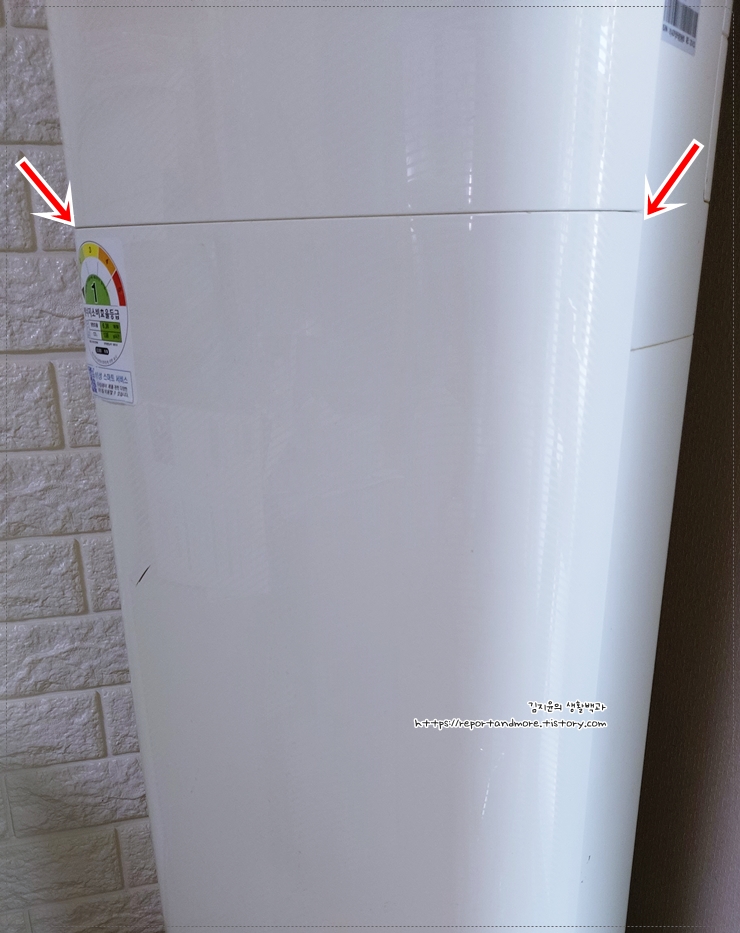 우리 집에 장승처럼 서 있는 삼성에어컨에서 물이 흘러나오고 있더군요.