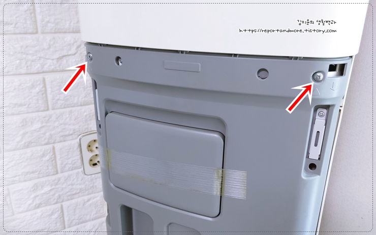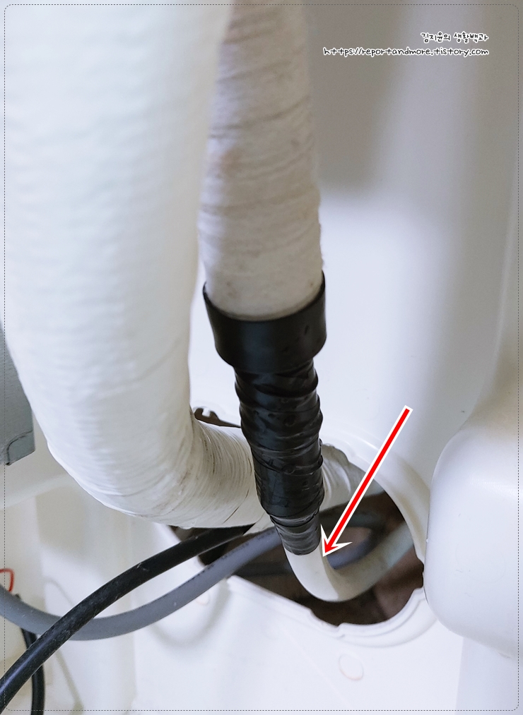 화살표 부분이 밖으로 나가는 드레인호수입니다.