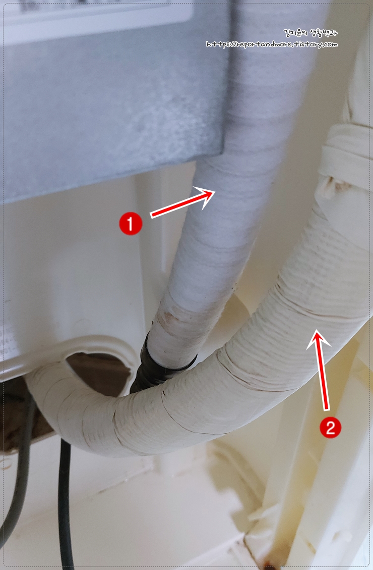 (1번)은 에어컨에서 생겨난 물을 밖으로 흘러 보내는 '드레인호수(배수용호수)'가 있고요,