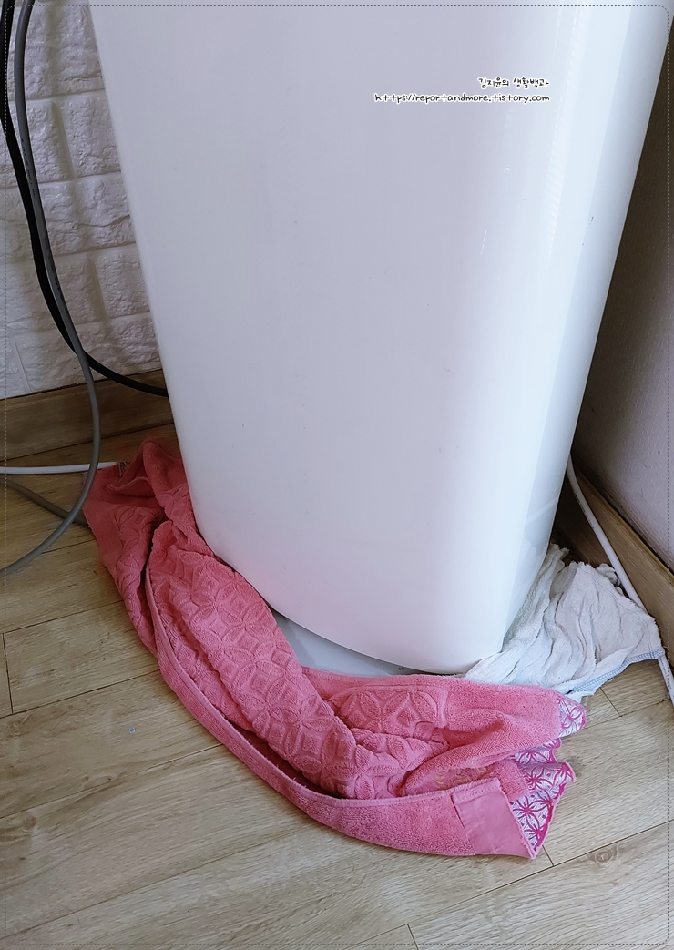 이렇게 에어컨에서 나온 물이 새서, 밑으로 나온 듯합니다.