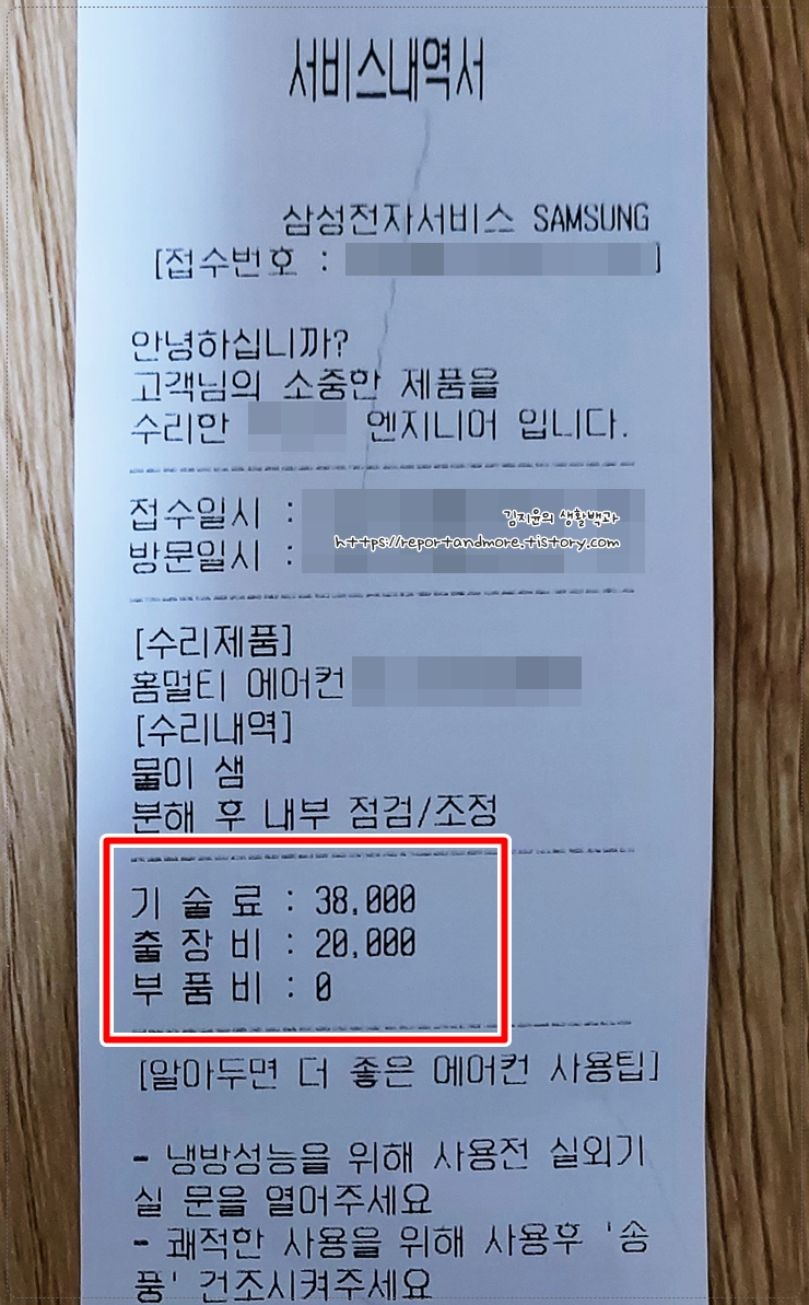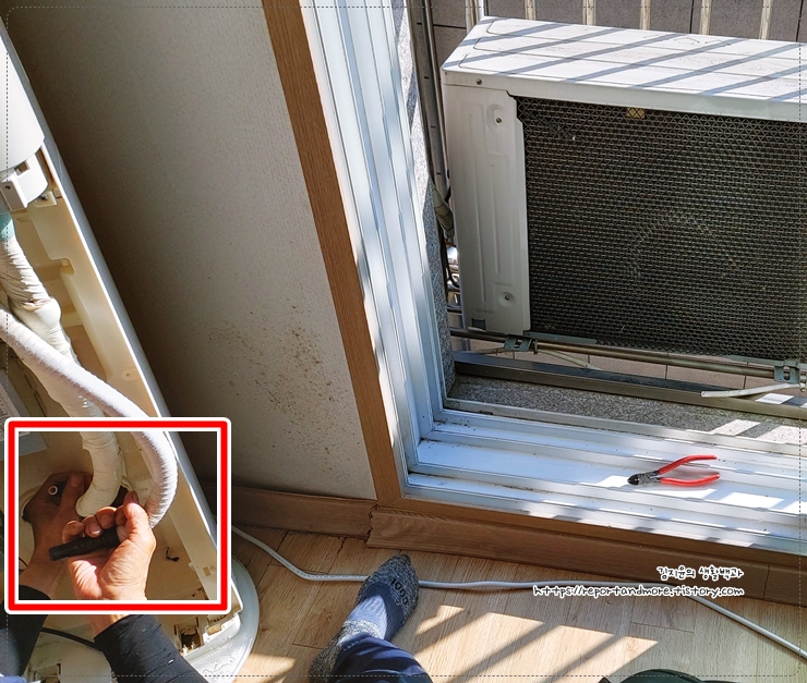 (생생 후기) 에어컨에서 물이 흘러요, 물넘침 고장 셀프자가수리 및 AS수리 비용 (1/2부)