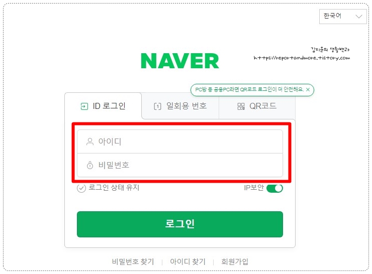 (사용하지 않는 저의 네이버 블로그를 이용해 보겠습니다.)