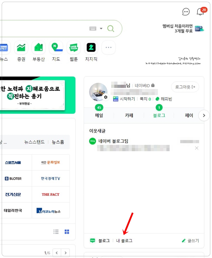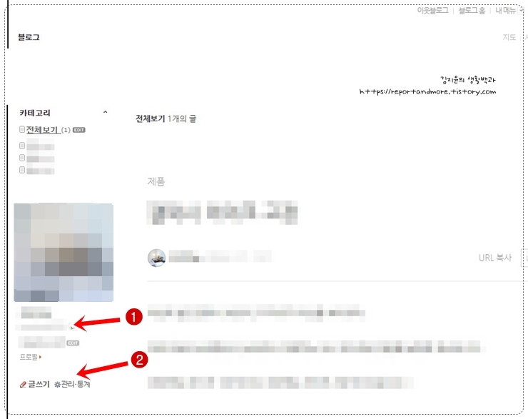 내 블로그에서 작업(?) 해야 하니까, [내 블로그]로 들어갑니다.