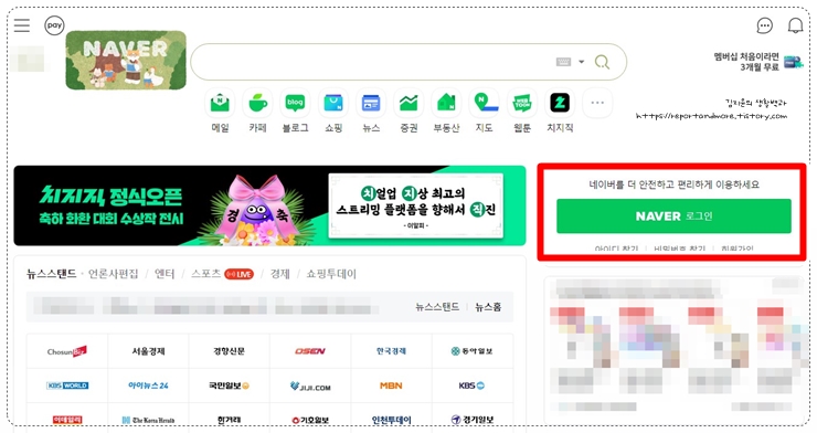 먼저 [네이버 로그인]을 클릭해 줍니다.