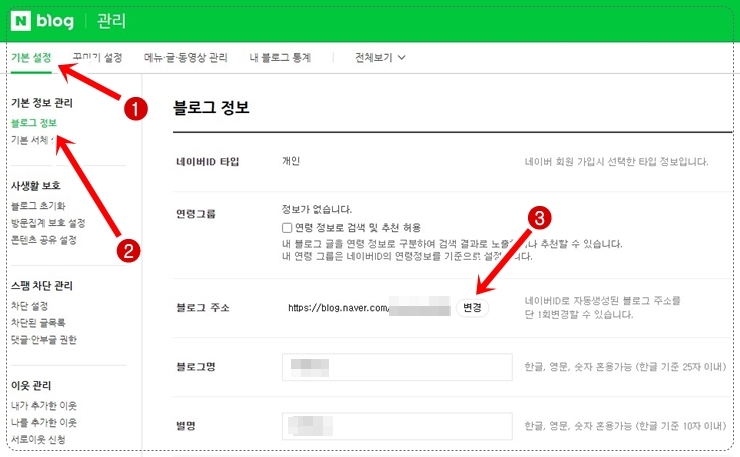저의 [네이버 계정 아이디]는 바뀌지 않고, [블로그 주소]만 바뀝니다.