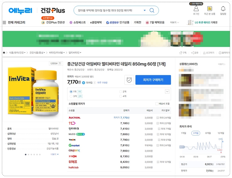 바로, 종근당에서 나온 [ImVita 아임비타]입니다.