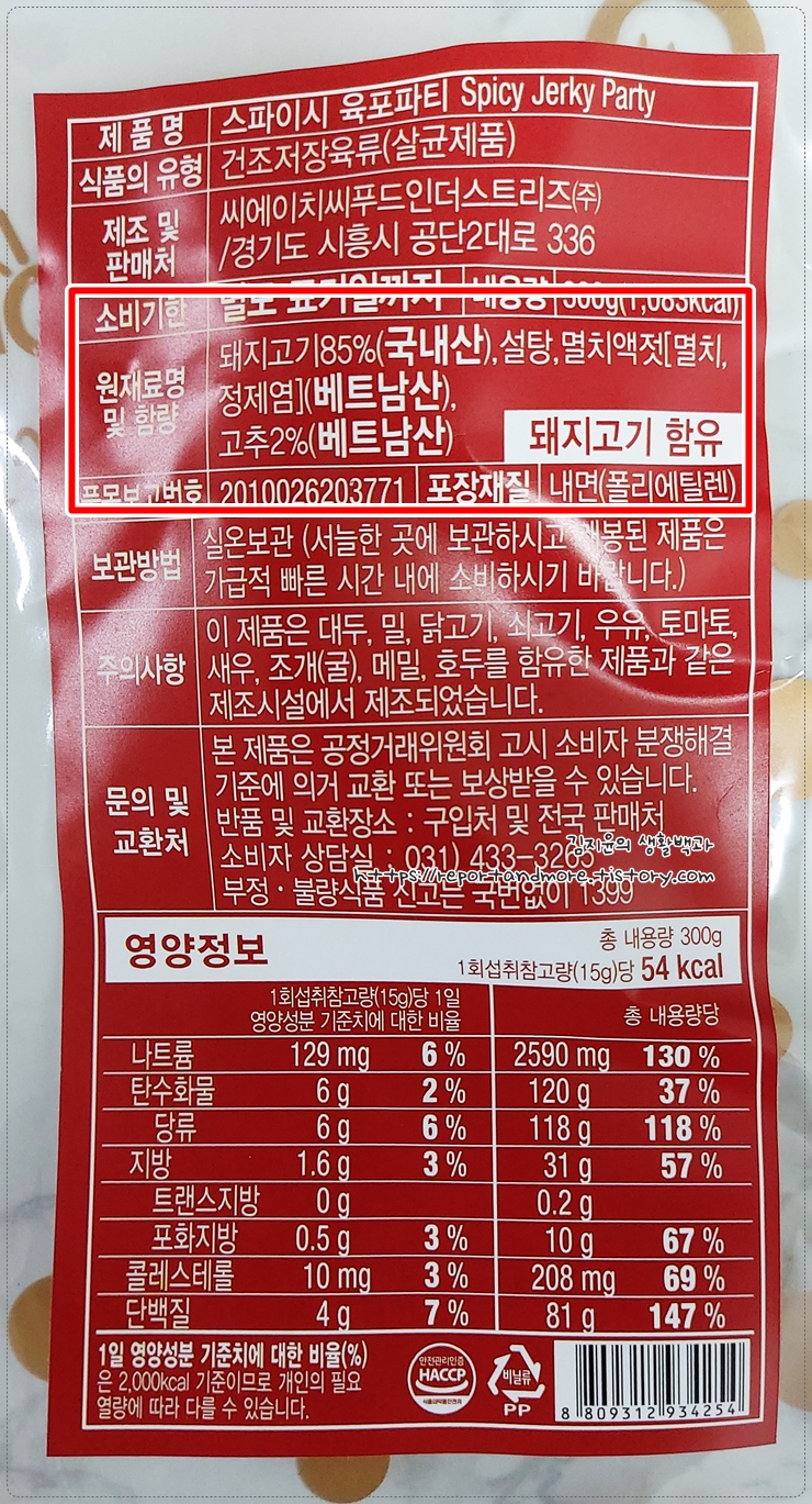 제조 및 판매회사는 CHC Food Industries (주)라는 중소기업인데요,